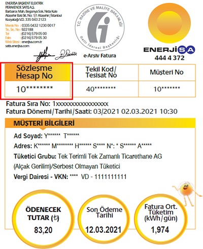 Please contact our Enerjisa Call Centre on 444 4 372 to inform us about the index values on your meter and have your bill issued.
