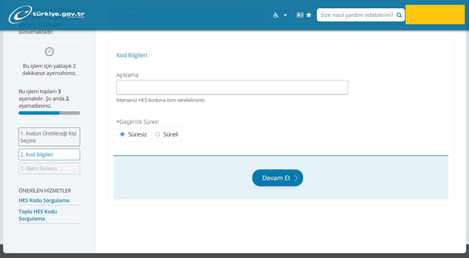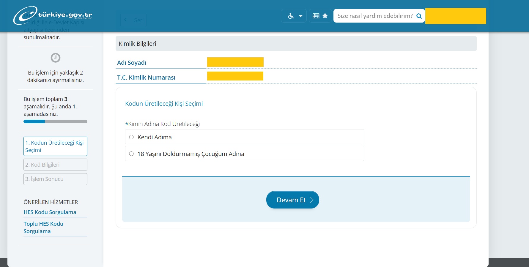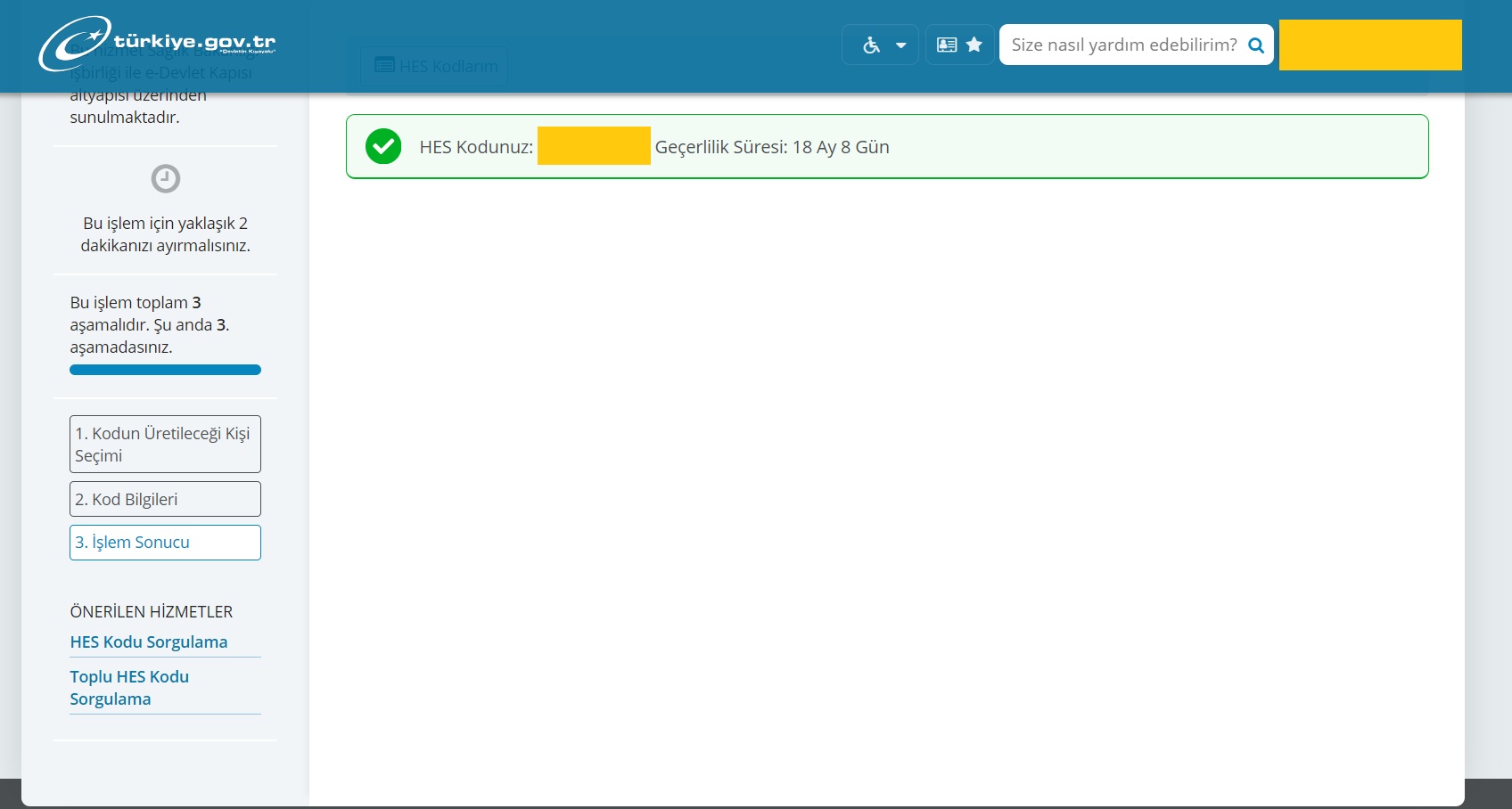 HES Code for children under the age of 18 can be generated via Hayat Eve Sığar (Life Fits Into Home) application, e-Government Gate and by a text message.